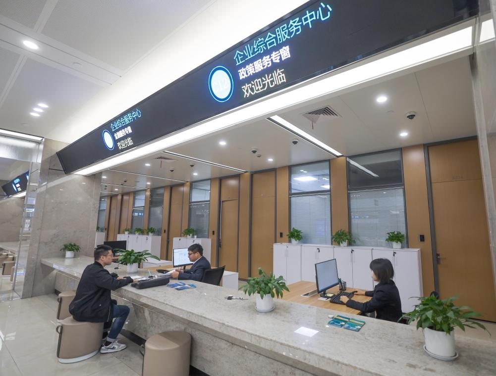 圖為企業(yè)主在浙江杭州臨安區(qū)企業(yè)綜合服務(wù)中心的金融服務(wù)專窗辦理業(yè)務(wù)。新華社記者徐昱 攝