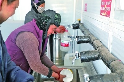 12月26日,群眾在陳家村安置點(diǎn)防凍水房用水。光明日?qǐng)?bào)記者 劉宇航攝/光明圖片