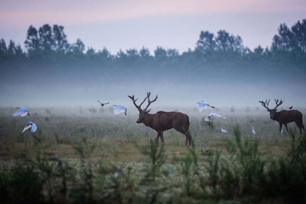 8月1日,兩頭麋鹿在湖北石首麋鹿國家級自然保護(hù)區(qū)內(nèi)活動(dòng)。