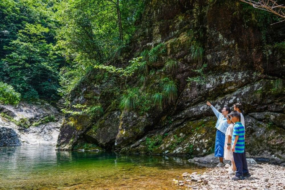 8月13日,在浙皖兩省交界處的清涼峰野外博物館,環(huán)保志愿者向小朋友講解生態(tài)環(huán)保知識。