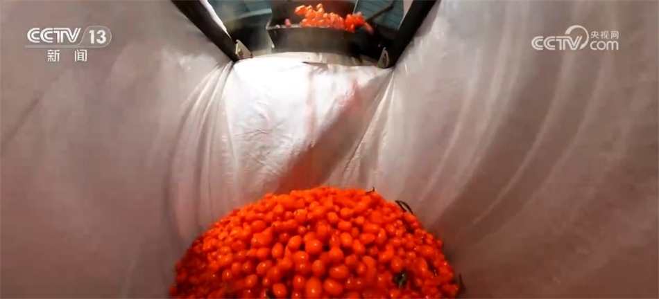 沙棘果送到工廠加工,而被分離出來的枝條也會被進(jìn)一步利用。