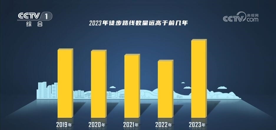 數(shù)據(jù)分析發(fā)現(xiàn),2023年徒步路線的數(shù)量遠(yuǎn)高于前幾年,相比2019年的漲幅接近15%。