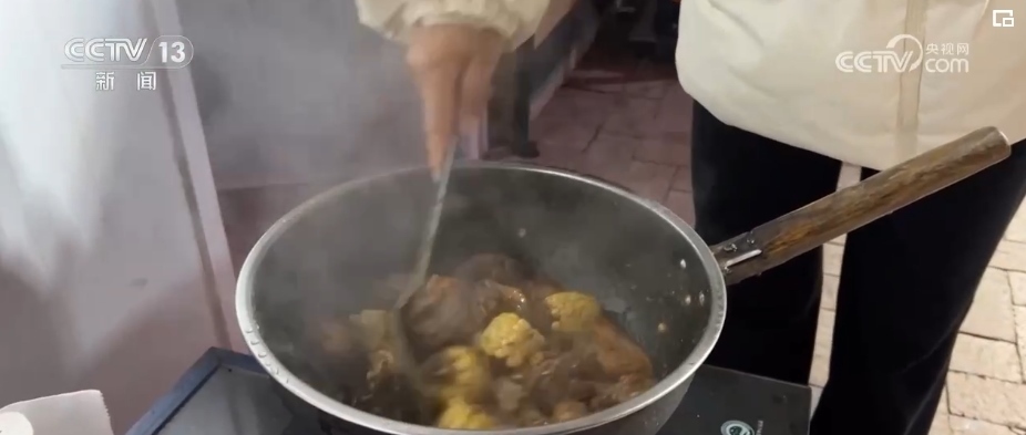 2023年12月31日晚上,孩子們的笑聲、小呲花的噼啪聲點(diǎn)燃了積石山縣劉集鄉(xiāng)團(tuán)結(jié)村安置點(diǎn)過(guò)節(jié)的氛圍。電視打開(kāi)了,安置點(diǎn)的群眾圍著篝火一起看跨年晚會(huì)。而此時(shí),婦女們也在忙著,燉牛肉、包餃子、炸果子,香氣在安置點(diǎn)彌漫開(kāi)來(lái)。
