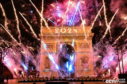 當?shù)貢r間2024年1月1日,法國巴黎舉行新年慶?;顒樱瑒P旋門前燃放煙花。