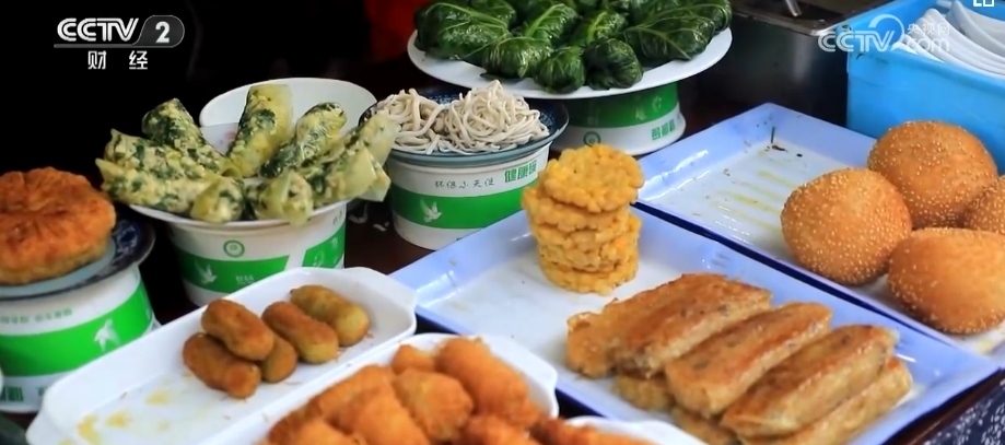 在古街上,一杯熱氣騰騰的綠茶,配上當(dāng)?shù)氐碾u子馃、肉沉子,是很多游客特地趕來(lái)吃的新年第一份早餐。店主說(shuō)今天光一個(gè)早上豆?jié){就賣了500多碗。