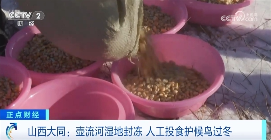 山西大同:壺流河濕地封凍 人工投食護(hù)候鳥過冬