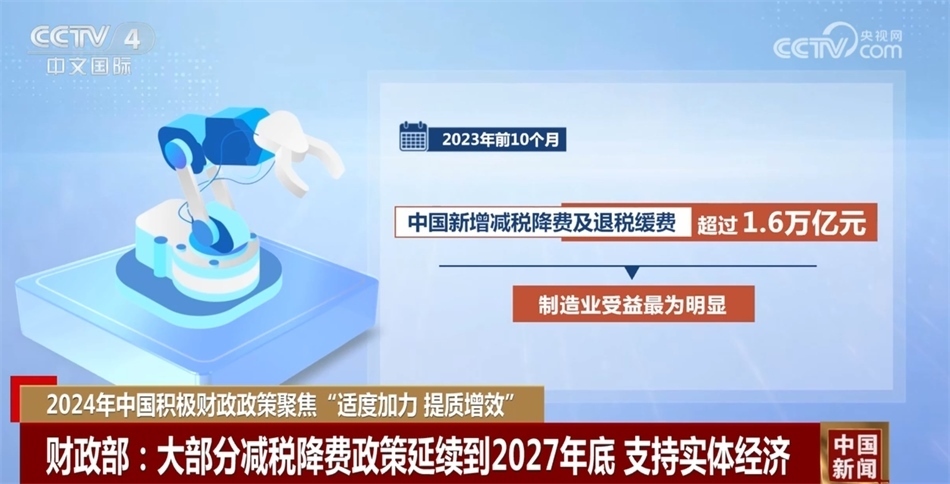 央視網(wǎng)消息:2023年中國(guó)實(shí)施的積極財(cái)政政策有力有效,推動(dòng)經(jīng)濟(jì)實(shí)現(xiàn)了質(zhì)的有效提升和量的合理增長(zhǎng)。記者日前在專(zhuān)訪多位中國(guó)財(cái)政部相關(guān)負(fù)責(zé)人時(shí)了解到,2024年中國(guó)將堅(jiān)持穩(wěn)中求進(jìn)工作總基調(diào),繼續(xù)實(shí)施積極的財(cái)政政策,圍繞“適度加力、提質(zhì)增效”做文章,并積極穩(wěn)妥推進(jìn)稅制改革?!吨袊?guó)新聞》元旦特別節(jié)目《開(kāi)年經(jīng)濟(jì)觀察》,今天(1月3日)聚焦“適度加力、提質(zhì)增效”的中國(guó)積極財(cái)政政策。