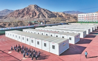 同樣是4日早晨,在民和縣官亭鎮(zhèn)中心學(xué)校,五星紅旗高高飄揚(yáng),一排排白色的活動(dòng)板房里傳出瑯瑯讀書聲。教室里燈光明亮,嶄新的課桌上放著課本和作業(yè)本。從1月2日起,積石山6.2級(jí)地震青海震區(qū)的中小學(xué)線下復(fù)課復(fù)學(xué)。