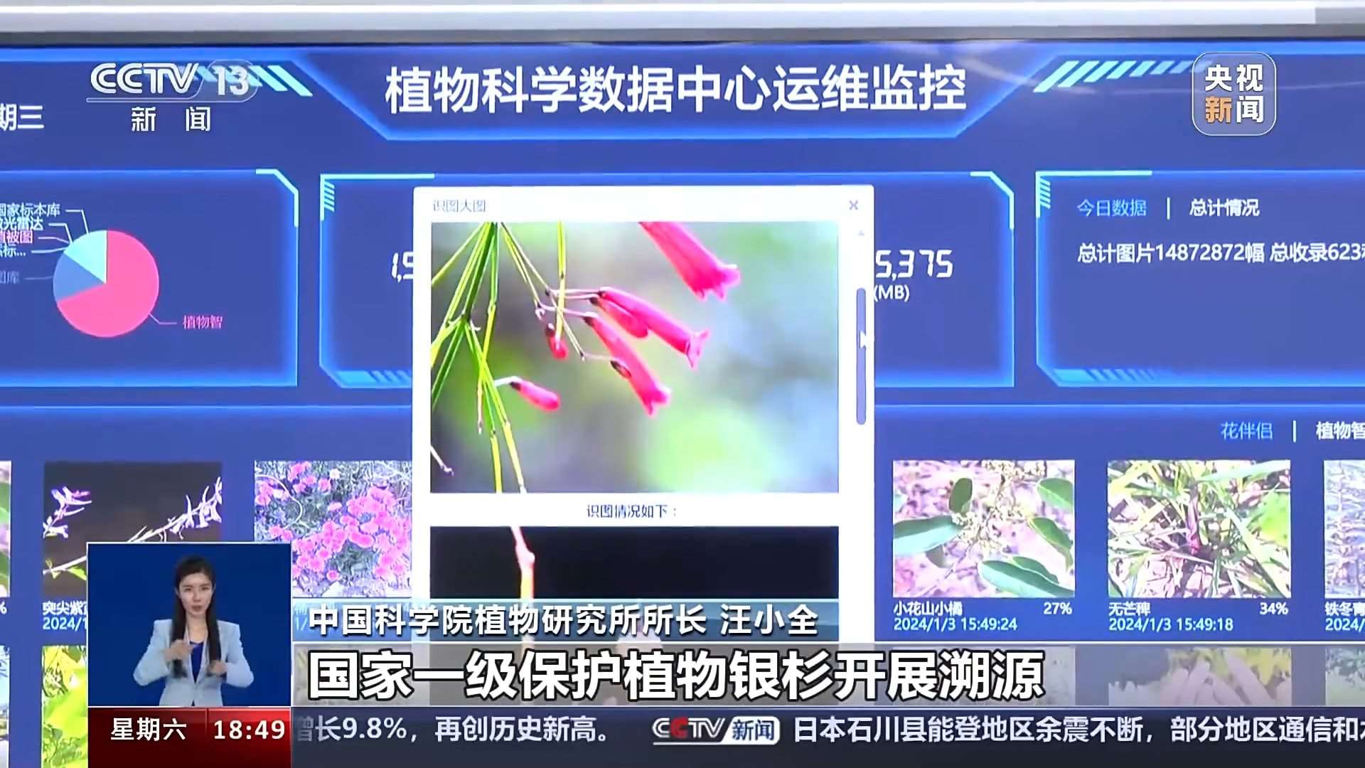 中國科學院植物研究所所長 汪小全:我們這個平臺,中國的植物物種絕大部分在這當中都有,每一個省份,每一個縣,精確到縣級,都有一個詳細的物種清單,而且這些物種跟它的各種圖片、各種分布、各種物候,所有的信息都是關聯(lián)在一起的,就是一站式的。