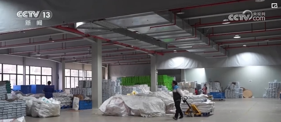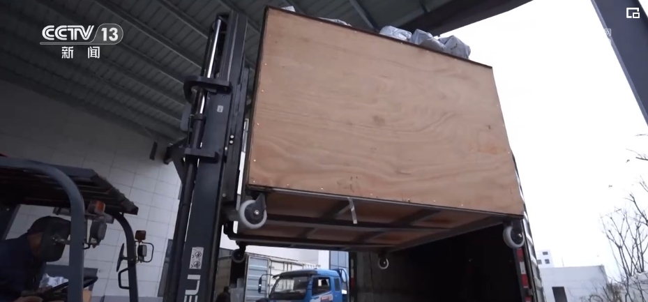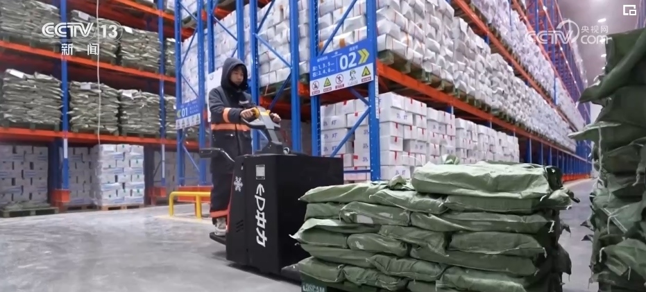 在浙江長(zhǎng)興的一家企業(yè)廠房里,廠家工作人員根據(jù)訂單快速分發(fā)、貼單、裝貨;快遞小哥則在一樓出貨區(qū),將叉車上的貨物運(yùn)上郵政貨車。