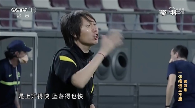 【解說詞】而之所以不正之風(fēng)在足壇不斷滋長蔓延,一個重要原因是,本該負起監(jiān)管職責(zé)的中國足協(xié),多年來有多名干部自身抵不住誘惑,被裹挾進俱樂部的資本游戲,不僅對彌漫的歪風(fēng)邪氣放任不管,甚至主動利用職權(quán)幫助俱樂部在保級、準(zhǔn)入、裁判判罰、賽程安排等多個方面謀取不正當(dāng)利益。