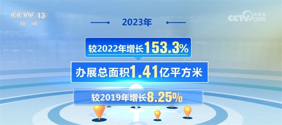《中國展覽經(jīng)濟(jì)發(fā)展報(bào)告2023》統(tǒng)計(jì)數(shù)據(jù)顯示,2023年中國共舉辦經(jīng)貿(mào)類展會(huì)3923場,較2022年增長117.1%,較2019年增長10.6%;辦展總面積1.41億平方米,較2022年增長153.3%,較2019年增長8.25%。經(jīng)貿(mào)類展會(huì)數(shù)量和展出面積超越疫情前水平,展覽業(yè)呈現(xiàn)全面恢復(fù)態(tài)勢。
