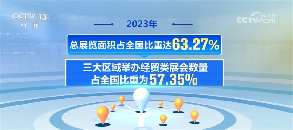 中國貿(mào)促會(huì)展覽管理部部長 鄔勝榮:從區(qū)域分布來看,展會(huì)分布呈現(xiàn)明顯的區(qū)域性特征,東部地區(qū)舉辦經(jīng)貿(mào)類展覽項(xiàng)目、數(shù)量和面積均領(lǐng)跑全國,全國占比分別為68.26%和73.53%。