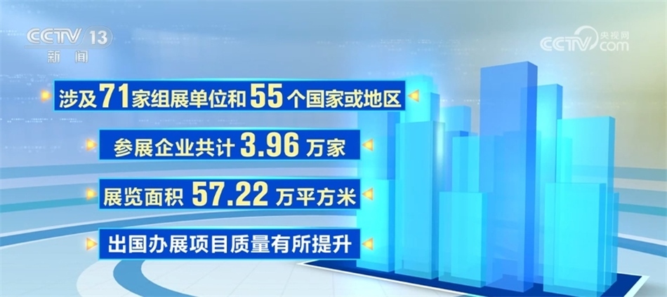2023年中國貿(mào)促會(huì)共審批計(jì)劃出國展覽項(xiàng)目1240項(xiàng),實(shí)際執(zhí)行900項(xiàng)。其中,出國參展822項(xiàng)、出國辦展78項(xiàng),涉及71家組展單位和55個(gè)國家或地區(qū),參展企業(yè)共計(jì)3.96萬家,展覽面積57.22萬平方米,出國辦展項(xiàng)目質(zhì)量有所提升。
