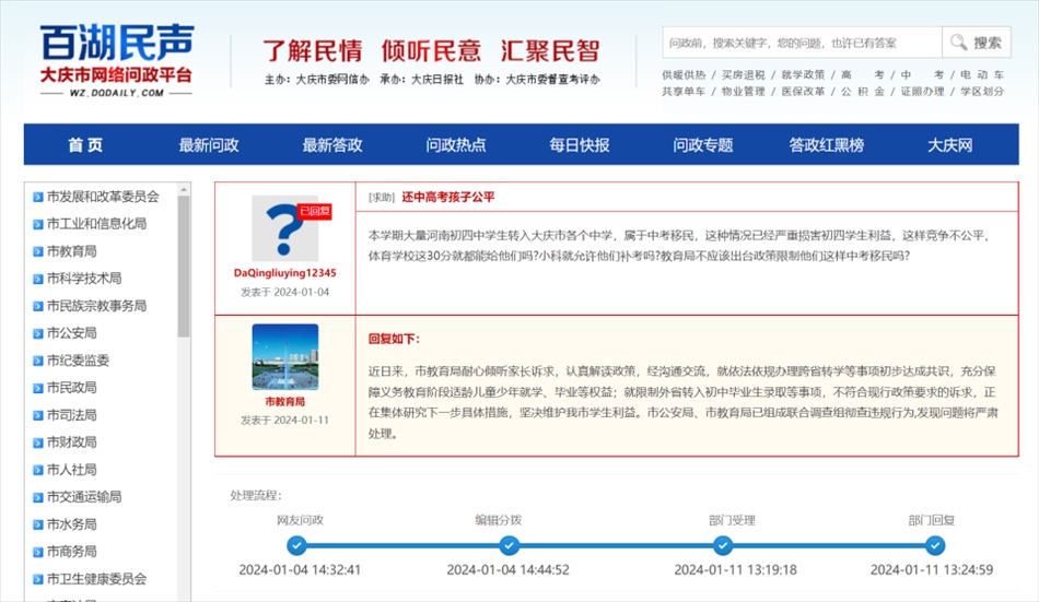 ·家長稱大量河南中學(xué)生“中考移民”至黑龍江大慶各個(gè)中學(xué),官方回應(yīng):暫時(shí)關(guān)閉學(xué)籍系統(tǒng),成立聯(lián)合調(diào)查組徹查違規(guī)行為。