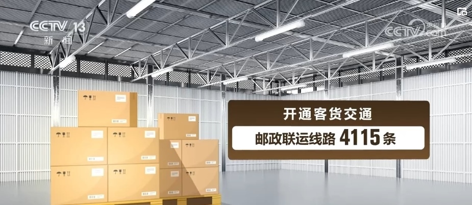 數(shù)據(jù)顯示,截至2023年底,中國郵政建成1061個縣、6010個鄉(xiāng)鎮(zhèn)的郵政處理中心和40萬個郵政及郵樂購村級站點(diǎn),郵政和快遞企業(yè)合作投遞的建制村覆蓋率達(dá)75%,開通客貨交通郵政聯(lián)運(yùn)線路4115條。
