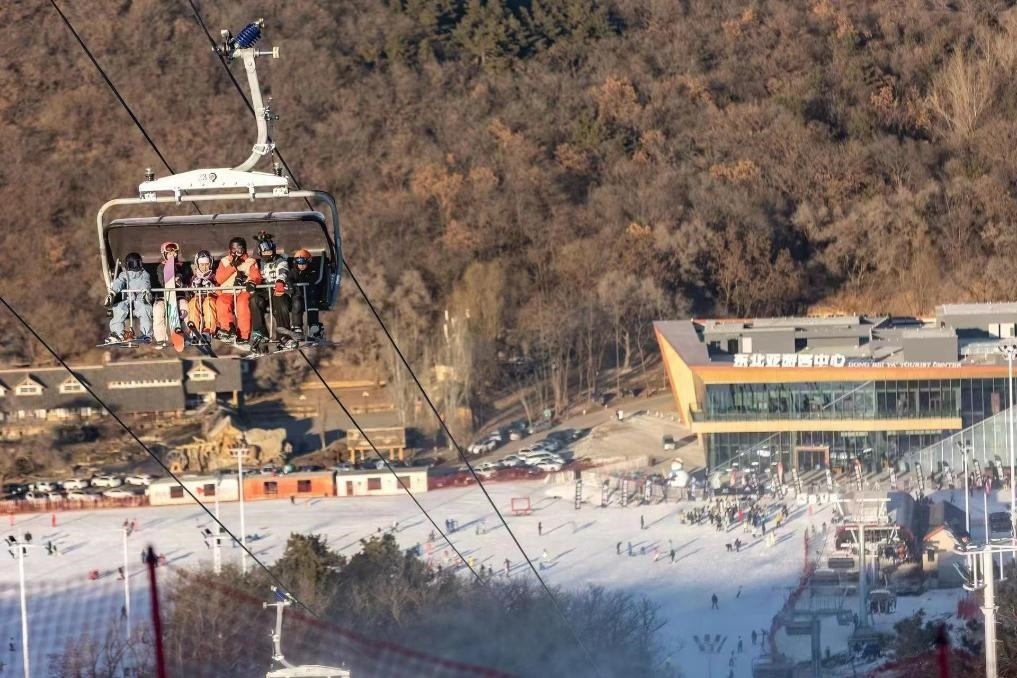 在吉林省萬(wàn)峰通化滑雪度假區(qū),滑雪愛(ài)好者們有序在纜車(chē)前排隊(duì),拿上雪板準(zhǔn)備在雪道上飛馳暢滑?!扒皫啄甓际侨ブ苓吅褪⊥獾幕﹫?chǎng),現(xiàn)在終于實(shí)現(xiàn)在家門(mén)口‘泡’雪場(chǎng)的夢(mèng)想了?!蓖ɑ?ài)好者王旭剛說(shuō)。