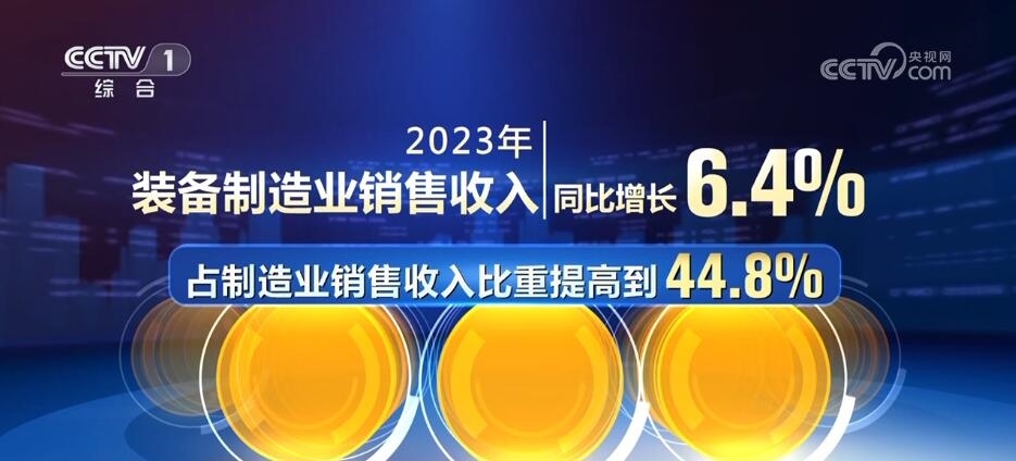 高端制造業(yè)發(fā)展持續(xù)向好,裝備制造業(yè)銷售收入同比增長6.4%,占制造業(yè)銷售收入比重提高到44.8%。其中,電動(dòng)載人汽車、鋰離子蓄電池、太陽能電池“新三樣”產(chǎn)品相關(guān)行業(yè)銷售收入合計(jì)同比增長超過五分之一。