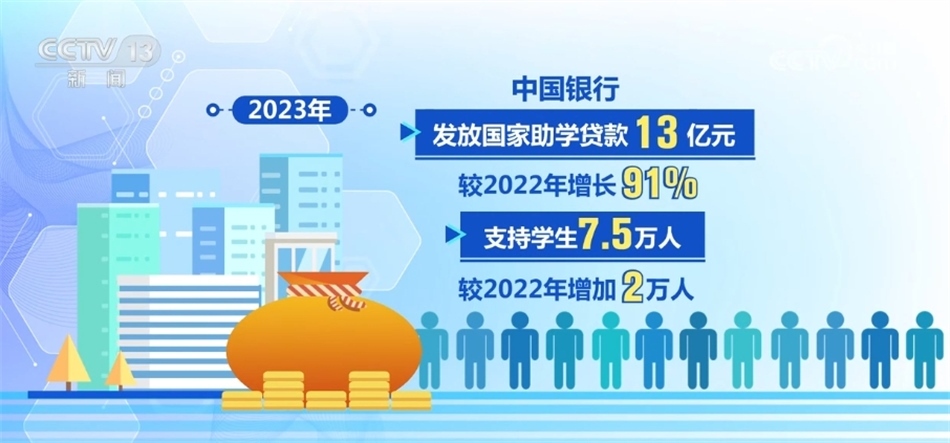 2023年,國家開發(fā)銀行發(fā)放國家助學(xué)貸款599億元,較2022年增長20.8%,支持學(xué)生563萬人,較2022年增長9.3%;中國銀行發(fā)放國家助學(xué)貸款13億元,較2022年增長91%,支持學(xué)生7.5萬人,較2022年增加2萬人;郵儲銀行發(fā)放國家助學(xué)貸款超過16億元,較2022年增長33.44%,服務(wù)學(xué)生近16萬戶。