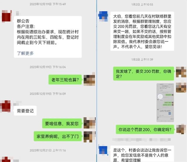 ·天津一村民在村聯(lián)絡群里說話被罰200元,官方回應:村委會退款并道歉。