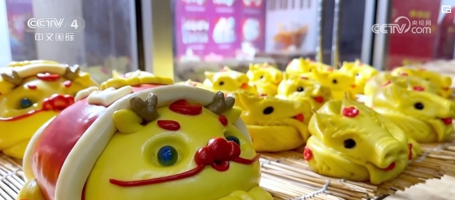 在山東,逢年過(guò)節(jié)人們也有做花餑餑、吃花餑餑的民俗。為迎合春節(jié)市場(chǎng),不少加工廠已經(jīng)在趕制帶有龍年元素的花餑餑。面點(diǎn)師們先將面團(tuán)搓長(zhǎng),再用果蔬汁調(diào)制,最后再揉捏造型?;G餑披上“紅衣”,一只可愛的“醒獅龍”就活靈活現(xiàn)地出現(xiàn)在眼前。