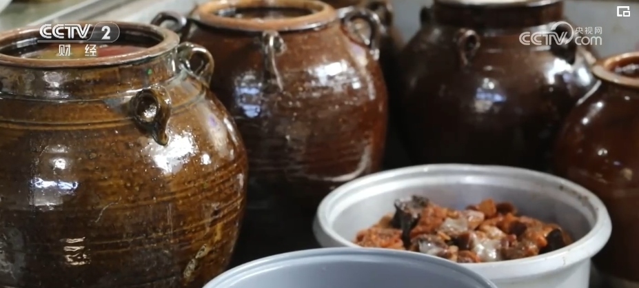 云南施甸縣,臨近春節(jié)家家戶戶開始煉豬油,制作“油罐肉”喜迎新年。油脂豐腴、御寒潤(rùn)燥的豬油是制作各種菜品不可或缺的動(dòng)物油脂,也可以將豬肉封存于油罐之中。一塊塊五花肉、里脊肉、豬肚、粉腸……在油鍋中水分逐步揮發(fā),釋放美妙的芳香。