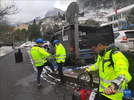 ?1月22日,工作人員在云南昭通市鎮(zhèn)雄縣山體滑坡災(zāi)害現(xiàn)場(chǎng)附近開展工作,保障救援現(xiàn)場(chǎng)通信暢通。新華社發(fā)