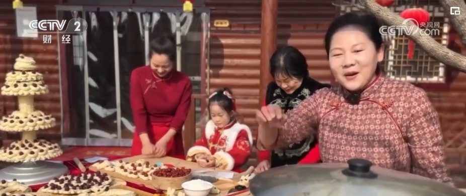 快過年了,在河南新鄭的農(nóng)家院,人們忙著揉面、和面,制作融合了龍元素的棗花饃。