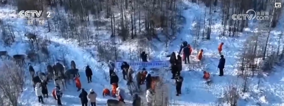在馴鹿園里,“小荔枝”們近距離與馴鹿接觸,在皚皚白雪地里撒歡兒,坐在雪圈上玩得那叫一個歡實。
