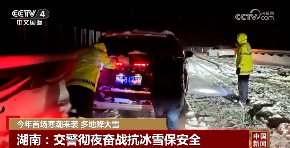 湖南西部、北部以及部分高海拔山區(qū)出現(xiàn)大雪,湖南交警徹夜奮戰(zhàn)抗冰雪,及時排除險情,全力以赴保證公路安全暢通。在長芷高速,因上坡路段積雪較深,部分小型汽車被困無法前行,婁底高速警察聯(lián)合司乘人員將百余臺車輛逐一推上坡道。