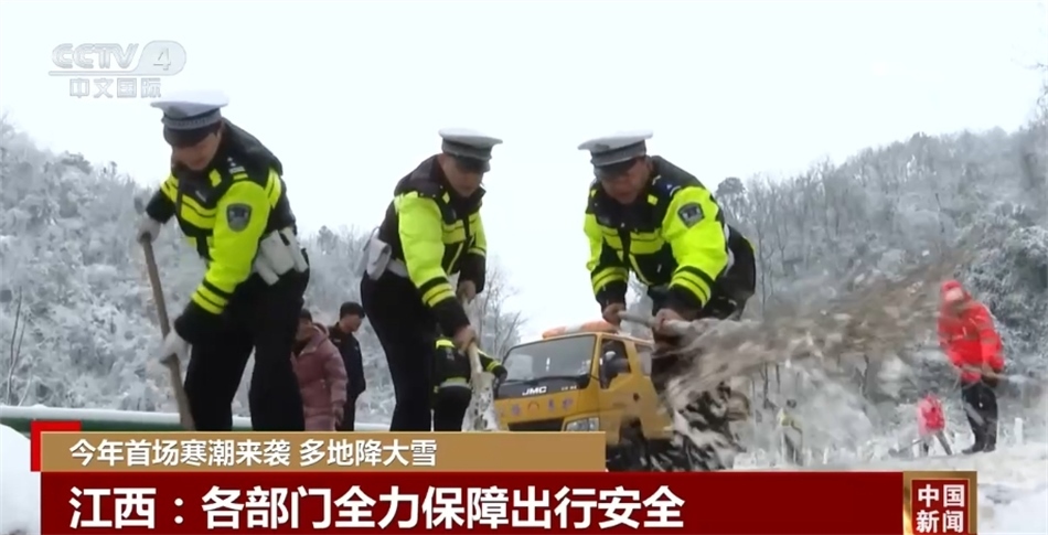 從21日開始,江西各地迎來了今年首場大范圍降雪天氣。德安縣迅速啟動惡劣天氣應(yīng)急預(yù)案,加強(qiáng)重點路口、路段的交通秩序管控。在梅嶺風(fēng)景區(qū),因為大雪、路面出現(xiàn)結(jié)冰,當(dāng)?shù)夭扇 跋迺r、限路、限流”的工作措施,對景區(qū)道路適時實施交通管制,保障游客出行游玩安全。在九江市武寧縣,工作人員清理倒伏的樹枝、撒融雪劑、鏟冰除雪、疏導(dǎo)交通,為過往的司機(jī)提供幫助。