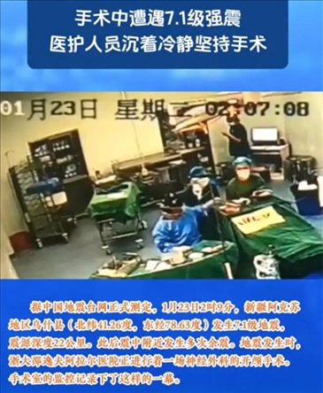 ·1月23日2時(shí)9分,阿克蘇地區(qū)烏什縣發(fā)生7.1級(jí)地震,地震發(fā)生時(shí),浙大邵逸夫阿拉爾醫(yī)院正進(jìn)行一場(chǎng)神經(jīng)外科的開顱手術(shù)。