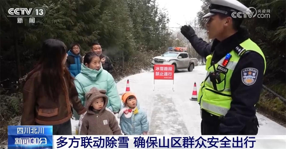 四川綿陽(yáng)北川羌族自治縣近日迎來(lái)低溫降雪天氣,山區(qū)路段大范圍降雪和道路結(jié)冰現(xiàn)象明顯,為確保群眾往返交通順暢安全,當(dāng)?shù)毓膊块T(mén)組織基層民警在重要路口設(shè)卡執(zhí)勤,維護(hù)交通秩序。交警在各路段有序開(kāi)展除雪防滑作業(yè),清掃路面積雪和冰塊。
