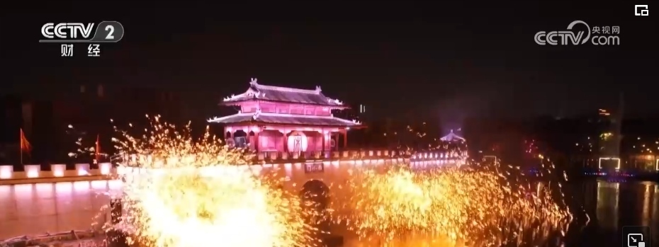 當(dāng)夜幕降臨,八朝古都開封也在燈光的裝扮下流光溢彩。打鐵花是流傳于豫晉地區(qū)民間傳統(tǒng)的煙火,至今已傳承千余年。在清明上河園內(nèi),表演者先將鐵水舀起拋向空中,再用力擊打空中的鐵水,一時間鐵花飛濺、流星如瀑。園內(nèi),亭臺樓閣雕梁畫棟、虹橋清波舟船往來,大型實景水上演出再現(xiàn)了北宋汴梁的盛世繁榮。