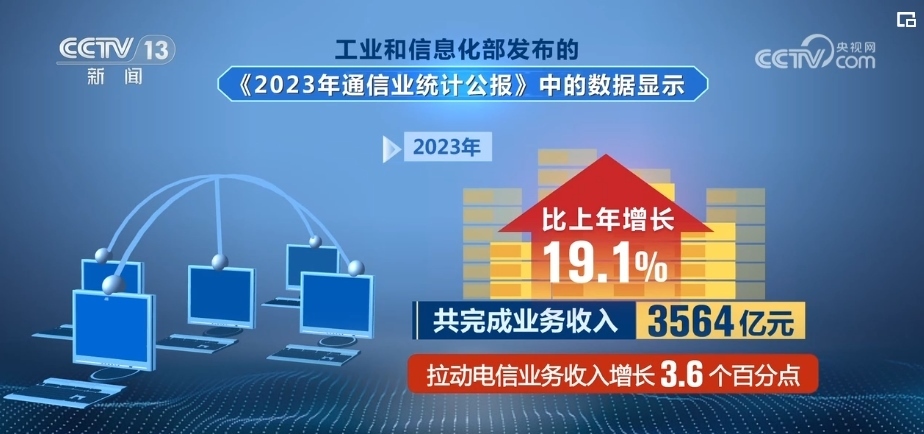 2023年,數(shù)據(jù)中心、云計(jì)算、大數(shù)據(jù)、物聯(lián)網(wǎng)等新興業(yè)務(wù)快速發(fā)展,共完成業(yè)務(wù)收入3564億元,比上年增長(zhǎng)19.1%,拉動(dòng)電信業(yè)務(wù)收入增長(zhǎng)3.6個(gè)百分點(diǎn)。