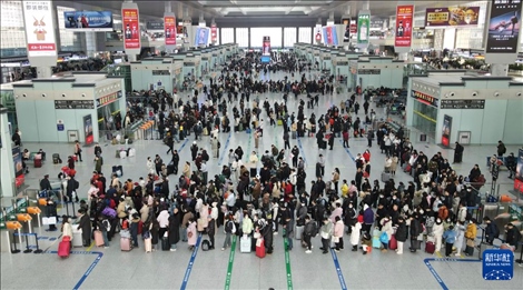 1月26日(春運第1天,農(nóng)歷臘月十六),全社會跨區(qū)域人員流動量18935.2萬人次,比2023年同期增長19.7%。
