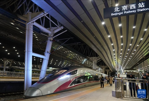 1月26日,G6701次列車駛離北京西站。新華社記者 張晨霖 攝