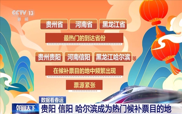 貴州省、河南省、黑龍江省是最熱門的到達(dá)省份。貴州貴陽、河南信陽、黑龍江哈爾濱等在候補票目的地中頻繁出現(xiàn),票源緊張。