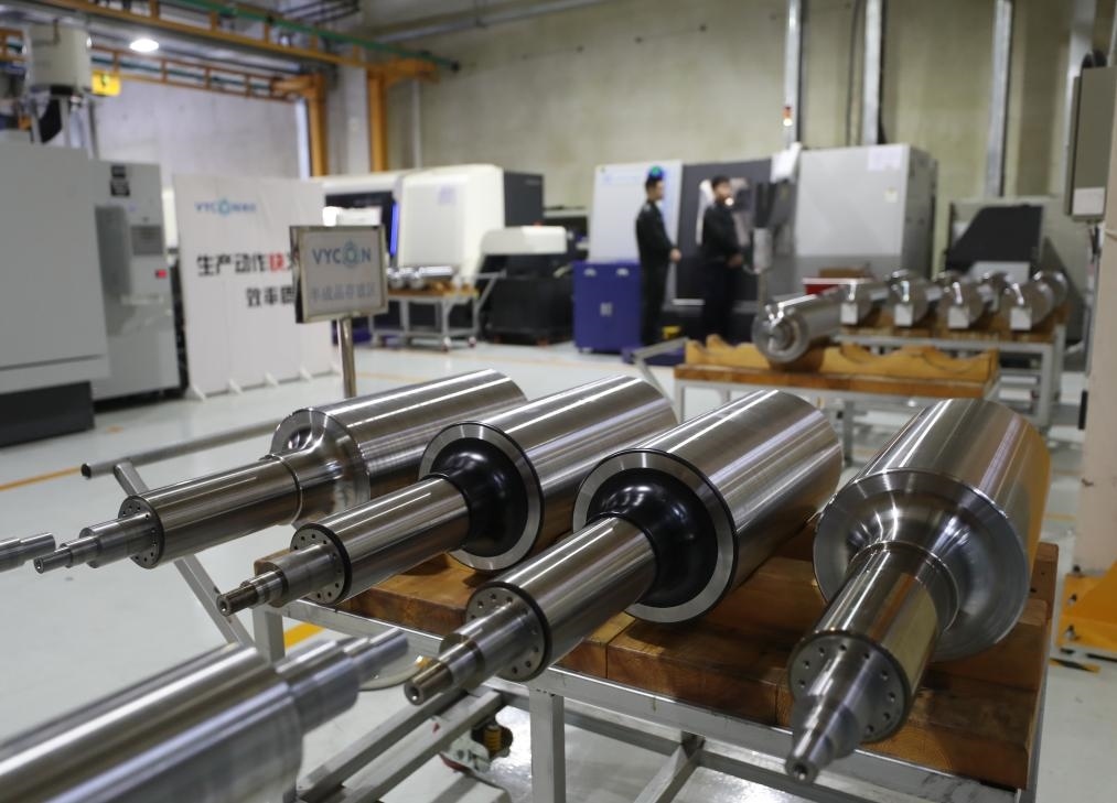在沈陽(yáng)微控新能源技術(shù)有限公司車間拍攝的由航天級(jí)合金鋼材制成的轉(zhuǎn)子(2023年11月29日攝)。新華社記者 楊青 攝