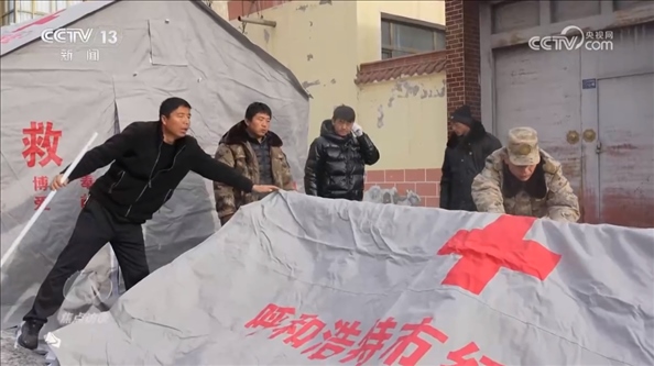 甘肅省臨夏州積石山縣石塬鎮(zhèn)振興社區(qū)副主任孔德義:“他發(fā)揮的作用特別大,因?yàn)樗吘故遣筷?duì)出身,身體素質(zhì)好,搭帳篷這一塊特別強(qiáng)。有他在的話,5分鐘就能完成一個,效率特別高。還有像如何規(guī)避余震帶來的傷害,他先給先鋒隊(duì)講解,我們再逐個分散開給群眾講解,等同于一個專業(yè)人士帶領(lǐng)著先鋒隊(duì)去幫助更多的群眾,去服務(wù)群眾。”