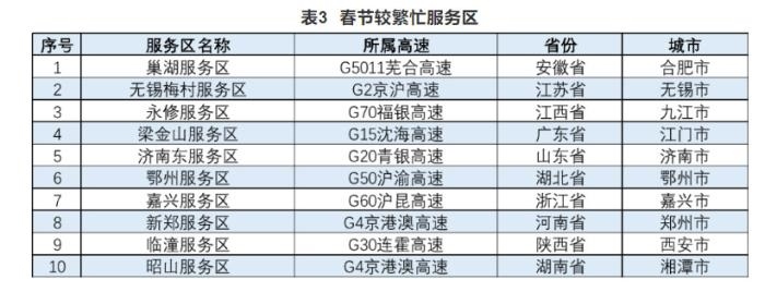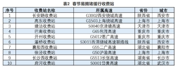 報(bào)告還公布了高速公路預(yù)計(jì)易發(fā)生擁堵緩行的路段、收費(fèi)站以及較繁忙的服務(wù)區(qū)。