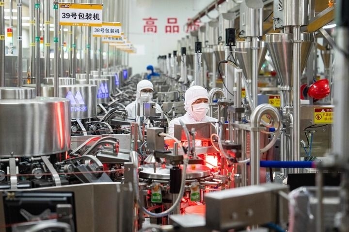 2023年11月23日,在鹽津鋪?zhàn)訛g陽(yáng)生產(chǎn)基地,工人在進(jìn)行產(chǎn)品包裝。新華社記者 陳思汗 攝