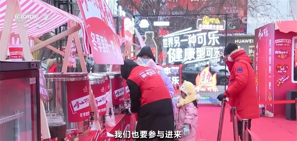 青島飲料集團總經(jīng)理 劉富華:這個冬天,整個哈爾濱的冰雪經(jīng)濟這么火,這也激發(fā)了我們山東人民、青島人民好客的基因,我們也要參與進來。我們這次帶來了10萬瓶可樂,我們到這邊把它熱著喝,分給廣大消費者。