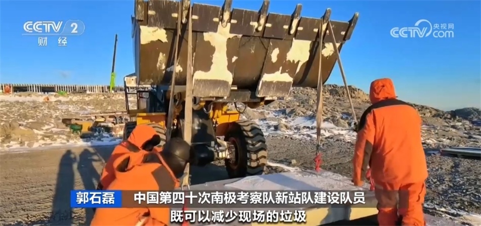 中國第四十次南極考察隊新站隊建設隊員 郭石磊:我們這個停機坪采用的是國內(nèi)加工生產(chǎn)、現(xiàn)場拼裝的方式,既可以減少現(xiàn)場的垃圾,也可以讓現(xiàn)場的施工速度大大提升,按計劃,三到五天完成停機坪的建設。