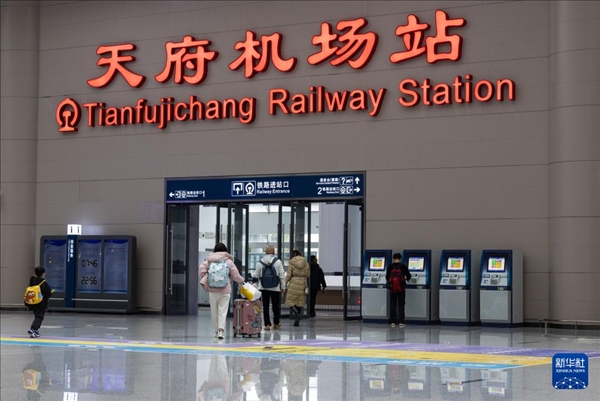1月26日,旅客走進天府機場綜合交通換乘中心(GTC)天府機場高鐵站。新華社記者 江宏景 攝