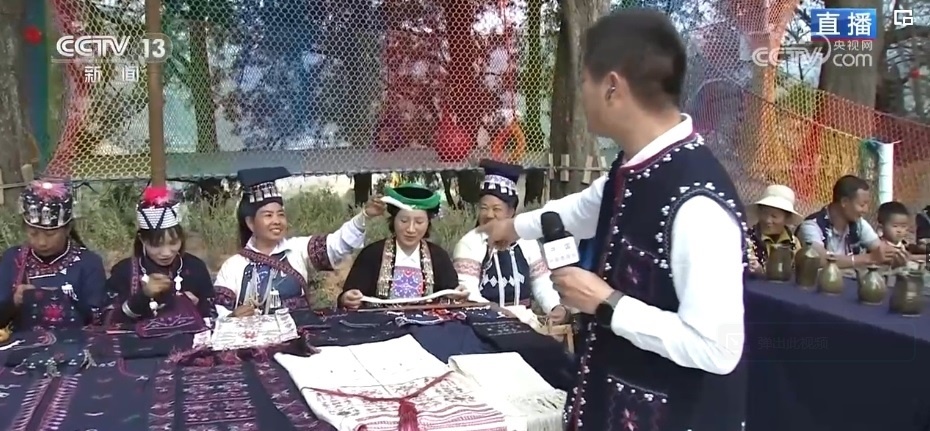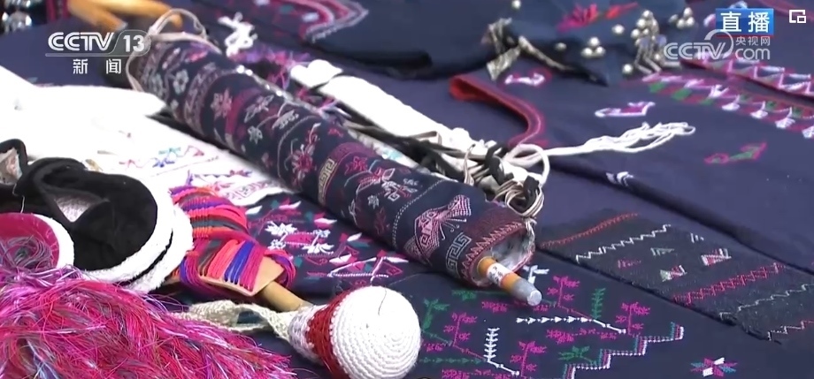 “過(guò)春節(jié),穿新衣?!泵褡宕汤C一針一線繡出來(lái)了山川湖海、日月繁星,不僅有帽子、衣服,還能做成杯墊、雨傘等,搭配起來(lái)都很好看。