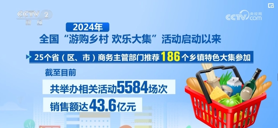 記者從商務(wù)部獲悉,2024年全國“游購鄉(xiāng)村 歡樂大集”活動啟動以來,25個?。▍^(qū)、市)商務(wù)主管部門推薦186個鄉(xiāng)鎮(zhèn)特色大集參加。截至目前,共舉辦相關(guān)活動5584場次,銷售額達(dá)43.6億元。