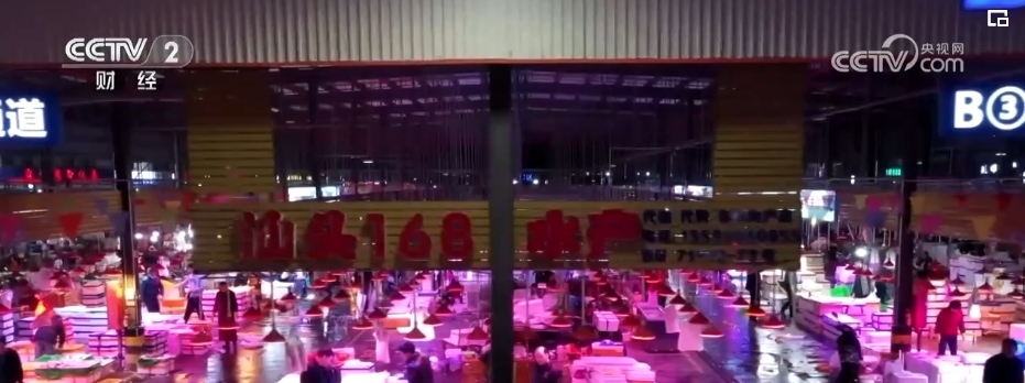 凌晨4時,在廣東汕頭的天環(huán)水產(chǎn)批發(fā)市場,已經(jīng)燈火通明、車來人往,這里已經(jīng)開市兩個小時,迎來一天最熱鬧的時候。臨近過年,多達(dá)幾十萬斤的水產(chǎn)每天從全國各地運往這里,再銷往粵東等多個城市。
