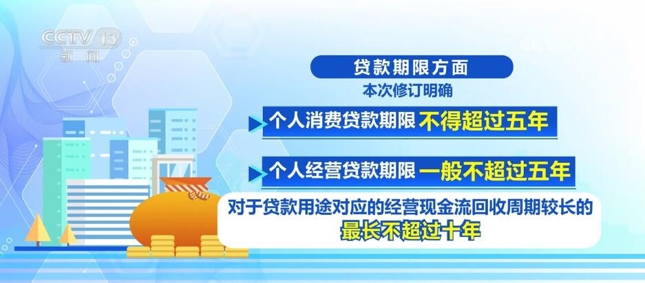 在貸款期限方面,本次修訂明確:固定資產(chǎn)貸款期限一般不超過(guò)十年。流動(dòng)資金貸款期限原則上不超過(guò)三年,對(duì)經(jīng)營(yíng)現(xiàn)金流回收周期較長(zhǎng)的,最長(zhǎng)不超過(guò)五年。