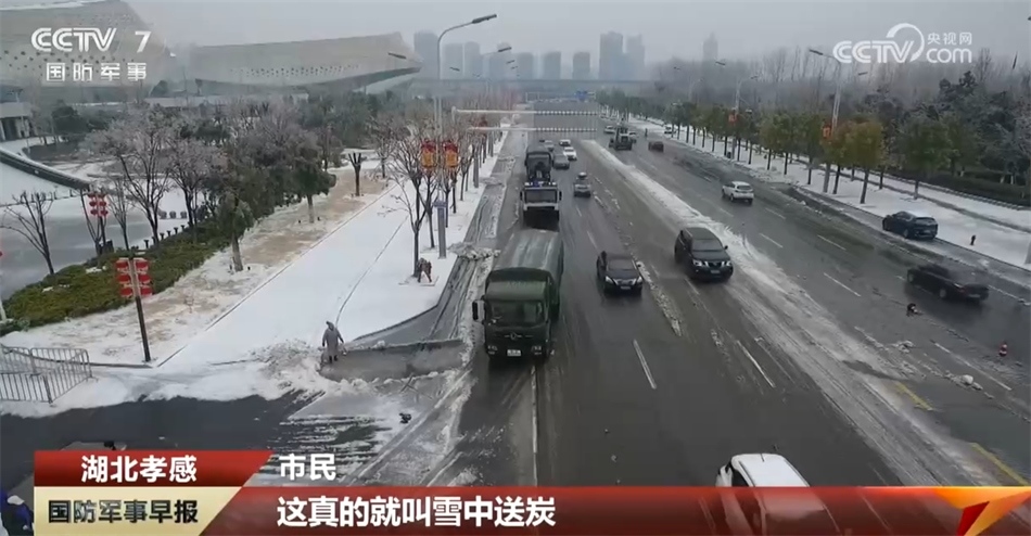 央視網(wǎng)消息:受連日強(qiáng)冷空氣影響,中部地區(qū)出現(xiàn)大范圍寒潮,湖北省孝感市因雨雪天氣,導(dǎo)致道路結(jié)冰濕滑,城市道路交通嚴(yán)重受阻。武警孝感支隊緊急出動80多名官兵,支援地方破冰除雪,為受困車輛提供幫助,確保城市重點路段和主干道暢通。